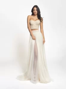 Our wedding dresses can be customized in white, ivory, and gold to match your unique style and vision.