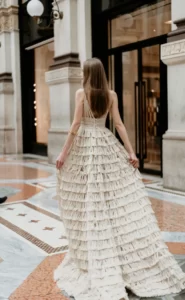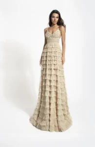 Our wedding dresses can be customized in white, ivory, and gold to match your unique style and vision.