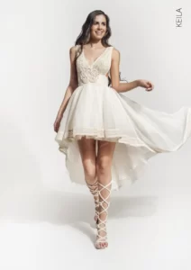 Our wedding dresses can be customized in white, ivory, and gold to match your unique style and vision.