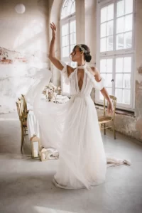 Our wedding dresses can be customized in white, ivory, and gold to match your unique style and vision.